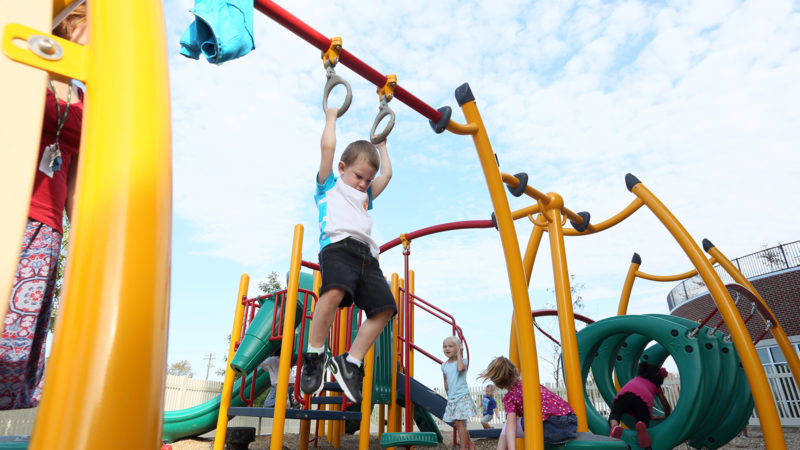 Our west side facility features five secure classrooms (complete with technological integration and eating/craft areas), an indoor playroom, and an outdoor playground.