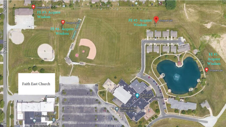 At our Faith East campus, there are 4 hidden geocaches to find. You can collect a puzzle piece found in each of the 4 geocaches to put together for a special message.