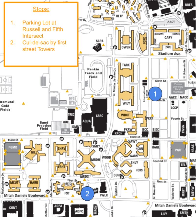 Free transportation is available between Purdue's campus and Faith Church West on Thursday nights and Sunday mornings. Look out for a "PBF Transportation" sign on the car so you know it's the right one!